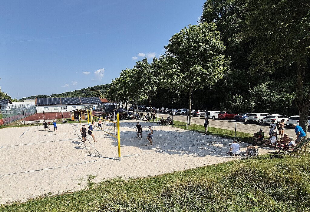 Die Volleyballer des TSV laden jedes Jahr am Feiertag Mariä Himmelfahrt zum „Beachen“ auf die schöne Anlage an der Schulstraße ein. Der Wettkampf gehört schon traditionell zum Rahmenprogramm des Kirchweih-Volksfestes. So waren die beiden Beachplätze den ganzen Nachmittag voll belegt. Der Spielmodus war einfach: ein Team bestand aus zwei Personen, die gemeldeten Mannschaften wurden in Gruppen eingeteilt, bei der jeder gegen jeden antreten musste. So wurde zunächst der Gruppensieger ermittelt und über das Achtelfinale, Viertel- und Halbfinale gings bis zum Finale.