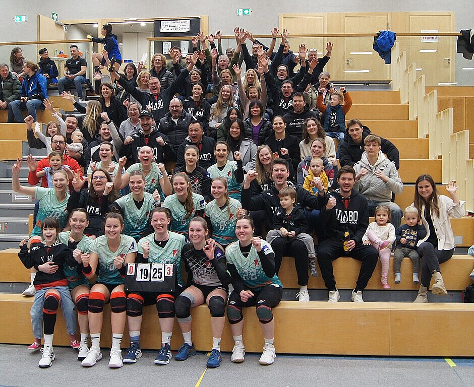 Somit ging Trainer Daniel Kosnar am Sonntag mit gemischten Gefühlen in die Begegnung mit dem FSV Marktoffingen. Zum einen stand mit dem Gast der aktuelle Drittplatzierte der Liga am Netz gegenüber und zum anderen konnte er nicht vorhersehen, wie die Damen die Doppelbelastung wegstecken. Doch die Niederviehbacherinnen präsentierten sich gut erholt und lieferten sich mit dem FSV einen offenen Schlagabtausch. Sehr zur Freude der vielen Zuschauer zeigten die Gastgeberinnen großen Kampfgeist und sicherten sich damit gleich mal den ersten Satz mit 25:22. Im zweiten Durchgang spielten sie die Gäste regelrecht an die Wand, wobei sie von einem unglaublichen Publikum unterstützt wurden. Es lief wie am Schnürchen und ein 25:15 war der Lohn für diese gute Arbeit. Auch im dritten Abschnitt gelang zunächst eine perfekte Vorstellung, doch dann kamen die TSV-Damen etwas aus dem Takt. Zur Satzmitte blies Marktoffingen zur Aufholjagd. Bis zum 19:19 konnte der Gast mithalten, dann behielt Sabrina Retschmeier die Nerven und setzte den Gegner mit hervorragenden Aufschlägen unter Druck. Beim 25:19 jubelte das TSV-Team mit seinem Publikum über einen unerwarteten Sieg, vor allem auch mit diesem klaren Ergebnis. Karen Thomas vom TSV sowie Kristin Löfflat vom FSV wurden dann noch zum MVP, zur wertvollsten Spielerin, gewählt